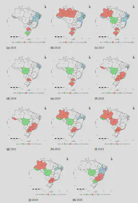 In conclusion, this study advances the empirical understanding of sexual violence in Brazil by combining multiple analytical dimensions and highlighting the importance of regional heterogeneity and spatial dependence. The integration of LISA-based evidence demonstrates that sexual violence is not only unevenly distributed but also spatially structured in a persistent manner. Future research should explore causal determinants and incorporate socioeconomic and institutional variables to further elucidate the mechanisms underlying the observed spatial patterns.